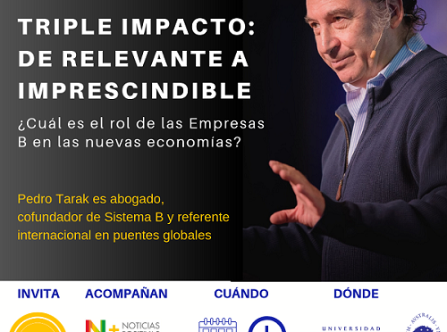 La Universidad Austral invita a la comunidad a una conferencia dictada por el abogado Pedro Tarak, cofundador de Sistema B y referente internacional en puentes globales, sobre «¿Cuál es el rol de las empresas B en las nuevas economías? Triple impacto: de relevante a imprescindible».